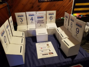 - 1 of the 4 tickets MUST be put in the box for/labeled Door Prizes.